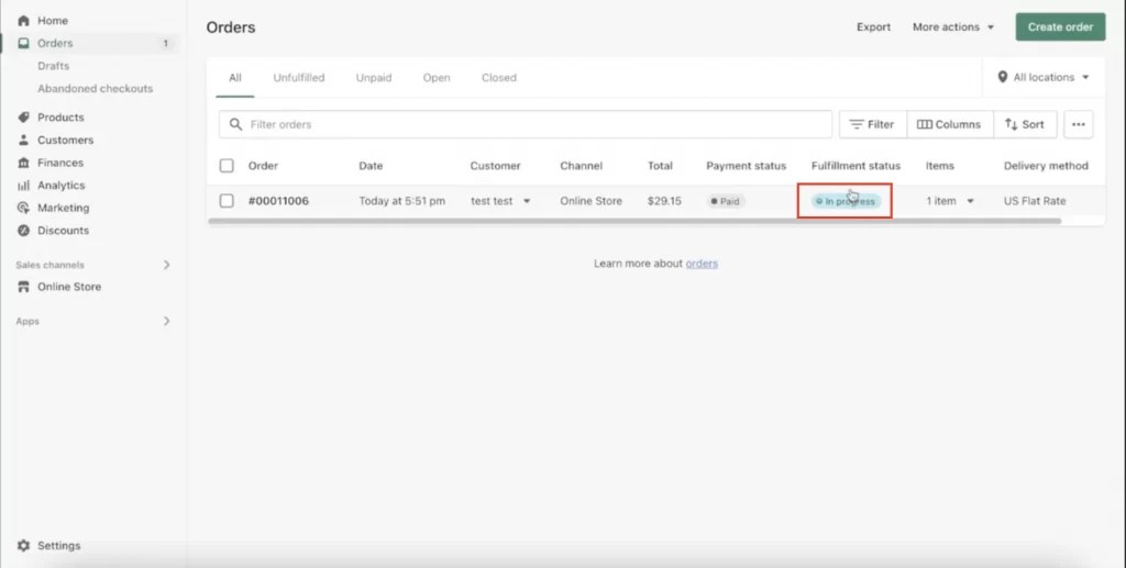 In this fulfillment type, you utilize your drop shipping partner. Your order will show In Progress if you have selected Automatic Payment Capture before.