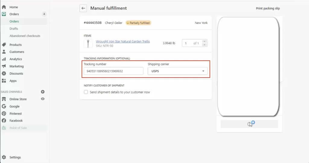 You need to specify which orders you partially fulfill, which you can do through your Shopify Admin page and select “Mark as Fulfilled.” Then, you must create a shipping label and mark the product zero to make it partial. Owing to the number of items you wish to ship, you can change it and mark it “Fulfilled,” which your customer will be notified about.